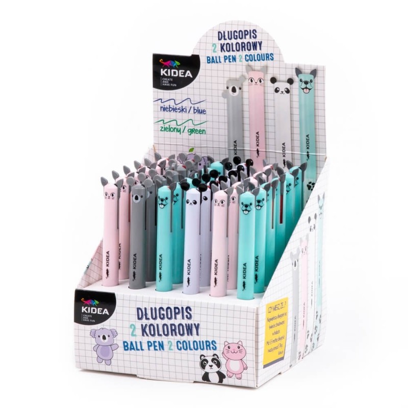Uroczy automatyczny długopis z 2 różnokolorowymi wkładami. Do wybory aż 4 różne wzory z uroczymi uszami – panda, koala, kot i buldog. Idealny dla wszystkich miłośników zwierząt.