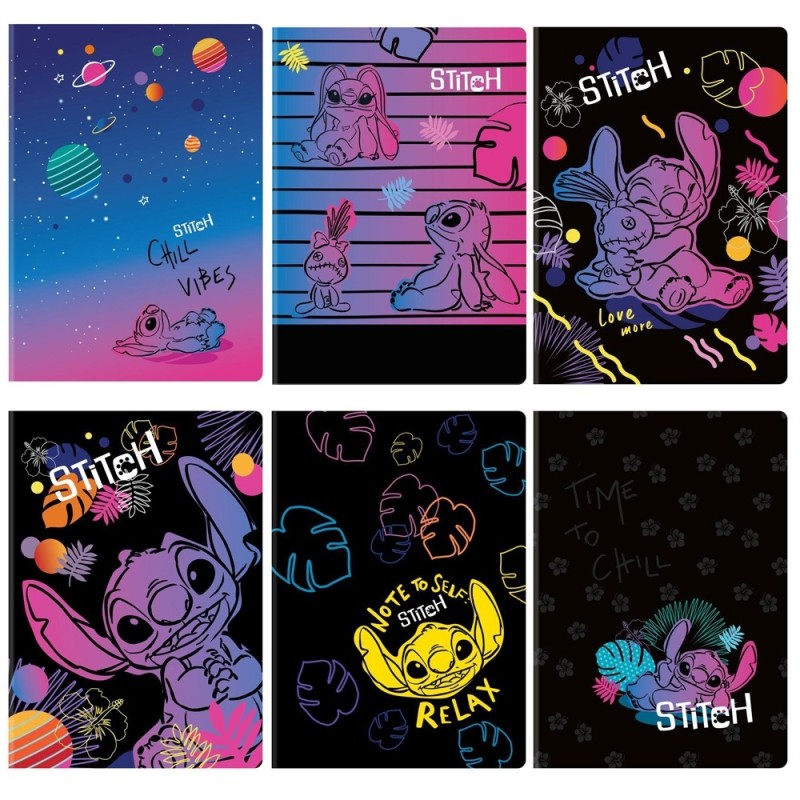 Zestaw 6 zeszytów 32-kartkowych z postacją Stitcha, kultowego bohatera z animowanego filmu Walta Disneya Lilo i Stitch: 3 zeszyty w linię + 3 zeszyty w kratkę