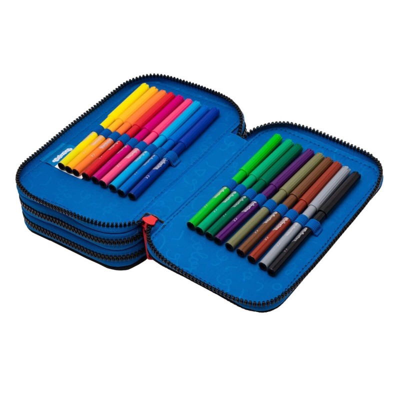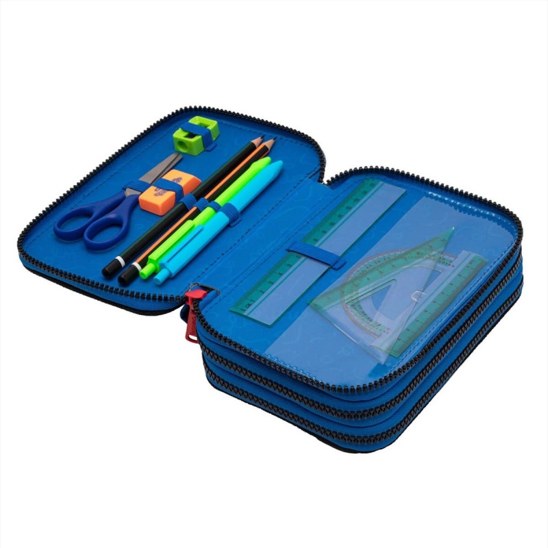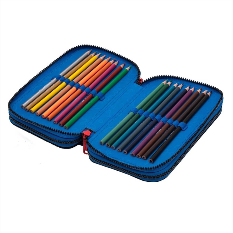 Komory piórnika posiadają gumowe uchwyty na akcesoria szkolne - wewnątrz pełne wyposażenie marki Colorino.